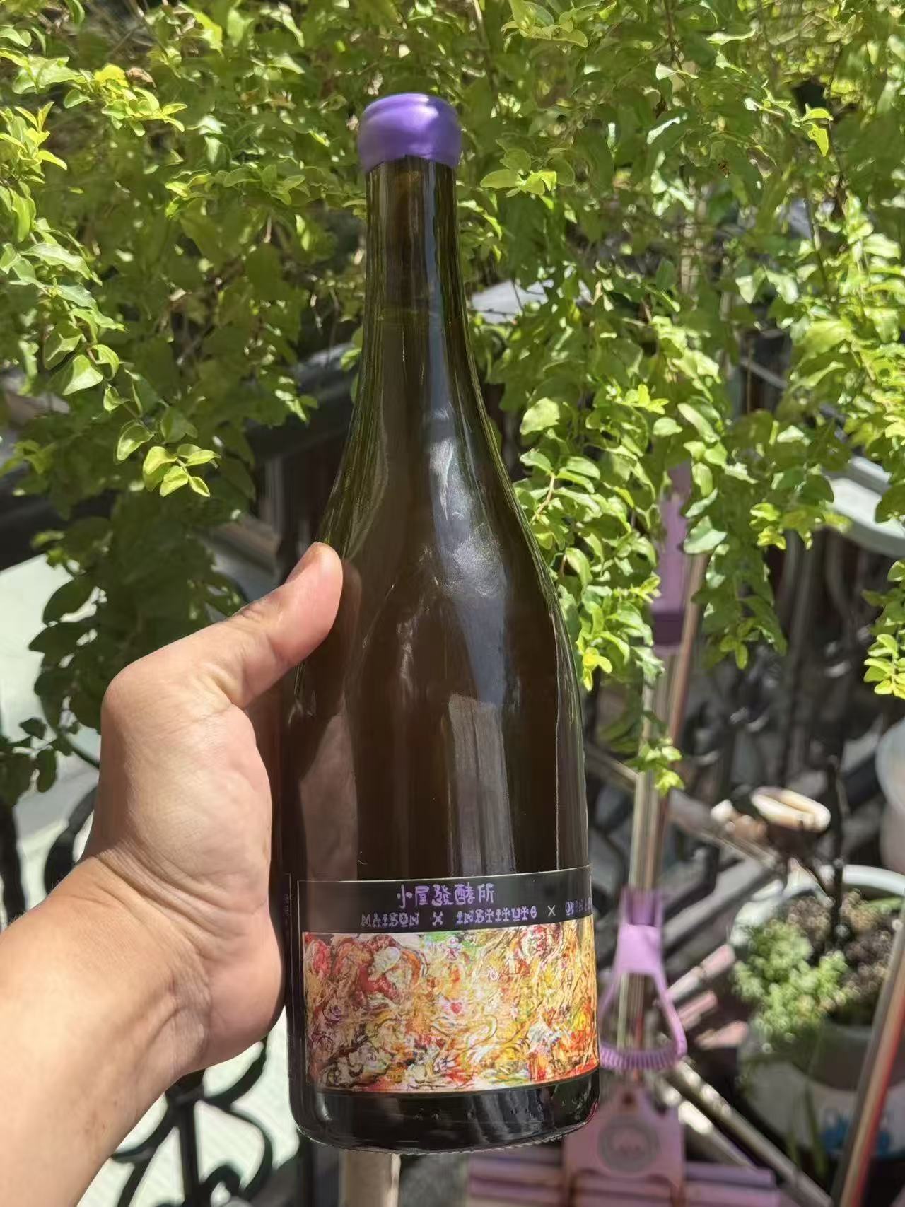 シャルドネ、ユニ・ブランは2週間、プティ・マンサンは4週間の果皮マセラシオン、シャインマスカットはマセラシオンせず。その後4種類の葡萄を混醸し、野生酵母で発酵、粗濾過でボトリングされます。